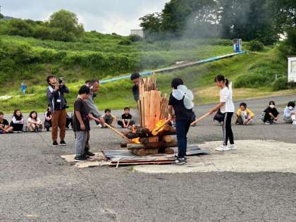 点火すると大きな炎があがり、「おおーっ」と歓声があがっています。