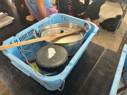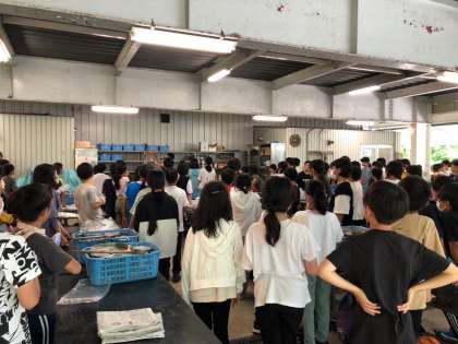 宿舎の方の説明を聞いて、みんなで協力して美味しいカレーをつくります。
