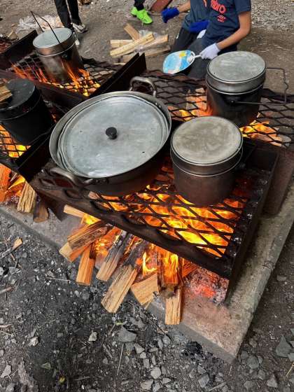 どの班も具材を煮込んだり、お米を炊いたりしています。