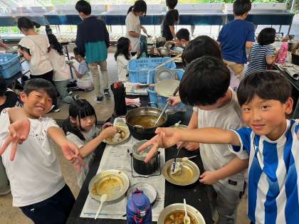 自然の中で食べるカレーは最高です!