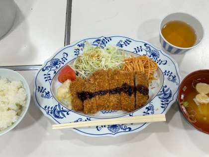 トンカツとスパゲッティに、子どもたちのテンションが上がっています。