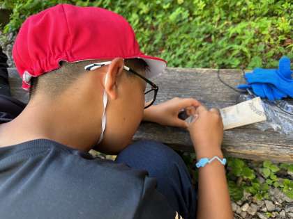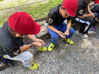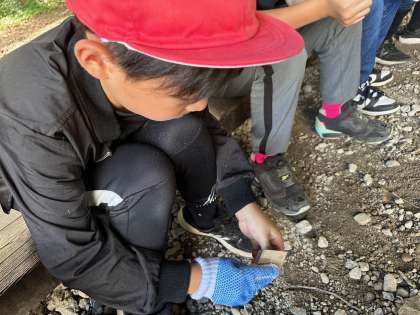 下書きができた人は、紙やすりや石を使って、自分が考えた形に近づけるために削っています。