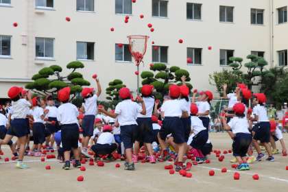 赤組も白組も練習の時よりも、たくさん玉が入れられましたよ。