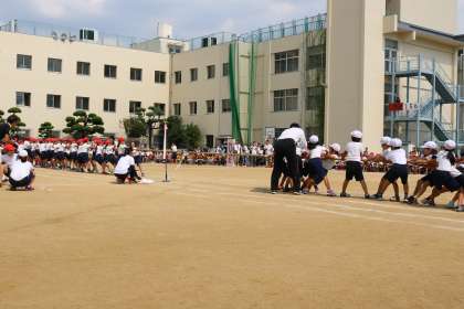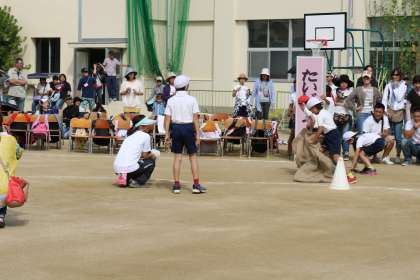 つなひきは力勝負といいつつ、踏ん張る時、引く時、のコツがあります。少ない練習時間でしたが、赤も白も力いっぱい頑張って結果は引き分け。