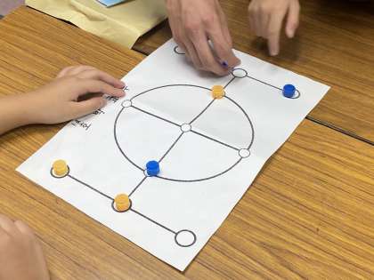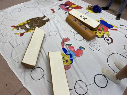 「ユンノリ」は先生と子どもたちでペアになってチーム戦で行いました。