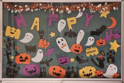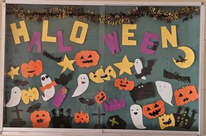 ハロウィンに合わせて、画用紙でお化けやジャック・オー・ランタンなどを作りました。