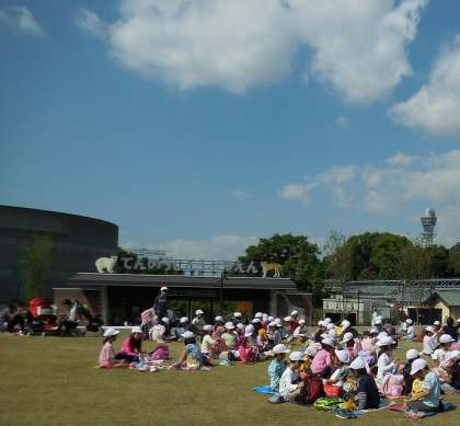 お弁当は、最近天王寺公園に新しくできた芝生広場で食べました。みんな、おうちの方に作って頂いたお弁当をおいしそうに食べていました。ゆっくりのんびりした時間を過ごせました。