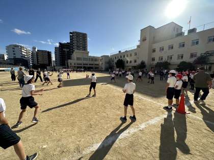 どのクラスも楽しんでいる様子で、ボールをキャッチしたときや、連続で当てたときの「やったー!」という歓声が、運動場いっぱいに広がっており、子どもたちの素敵な笑顔をみることができました。