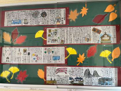 小さな文字と、色鮮やかな絵で修学旅行の思い出を絵巻に込めました。