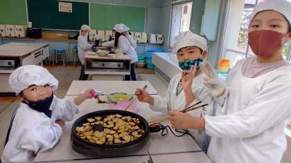 大学いも作りではホットプレートに並べて焼き、「黄色くなってきたら出来上がり」を合図にすると、みんなじっと注目しながら待っていました。