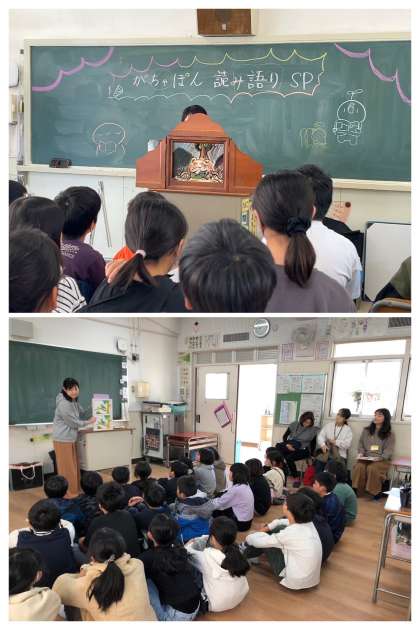 がちゃぽんさんによる1時間バージョンの読み語りスペシャルがあり、たくさんの絵本の読み語りや、紙芝居をしていただきました。