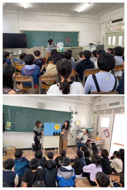 今回は紙芝居や大型の絵本も用意していただき、子どもたちも夢中になってお話をきいていました。