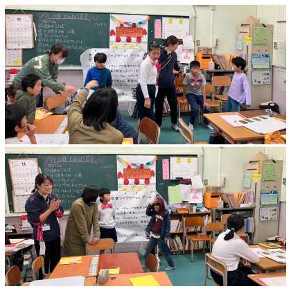 それぞれのグループが廊下に出て、誰がどの順番に教室に入ってくるのか、予想をします。