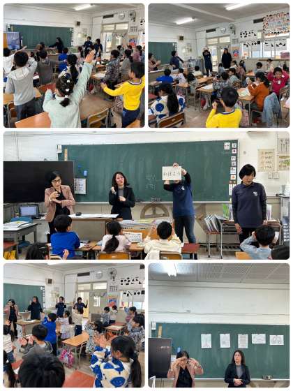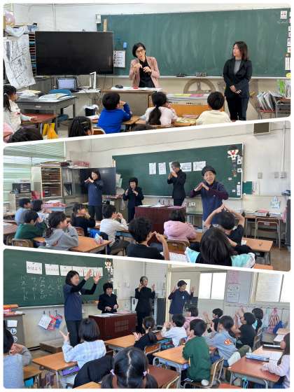 学習の最後は、三国小学校で取り組んでいる歌「ビリーブ」を手話を付けて合唱しました。