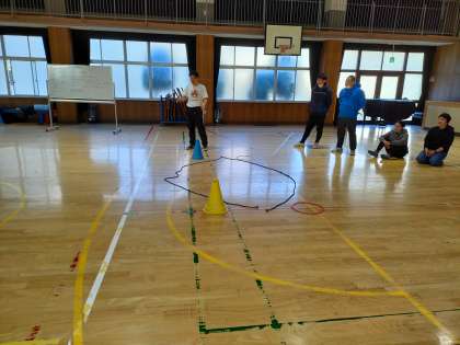 3学期からの体育科学習につながるよう、みんなで指導方法を学びました。