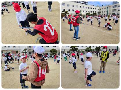 今日は、15分休みに「1・2年生になわとびを教える機会」があり、体育委員会のお姉さんお兄さんたちが、なわとびのとび方を教えてくれました。