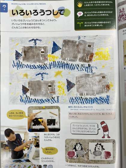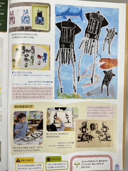 2月ごろから、図工で集めた材料を組み合わせて版にした「版画づくり」に取り組みます。