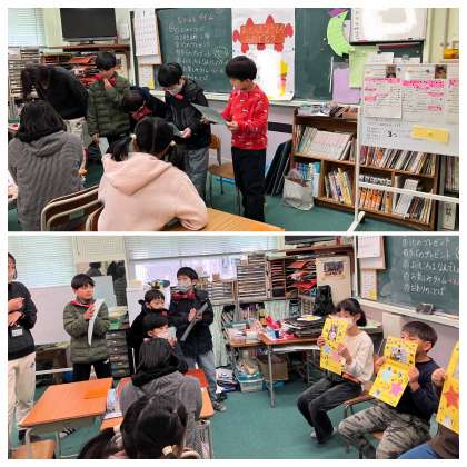 恒例の「いいとこみつけ」をした後、今回は「お笑いで盛りあげたい!」ということで、二人組の「なかよしブラザーズ」が考えたコントを披露してくれて、みんな笑顔で盛りあがりました。
