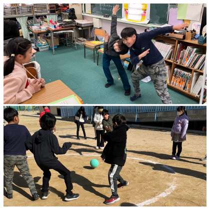 その後のおたのしみタイムでは、運動場で転がしドッジボールを行い、楽しく過ごしました。