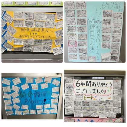6年間の給食を振り返りながら、一人一人が自分の思いを書きました。