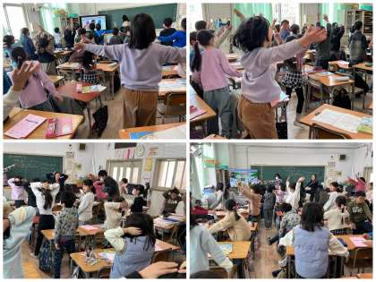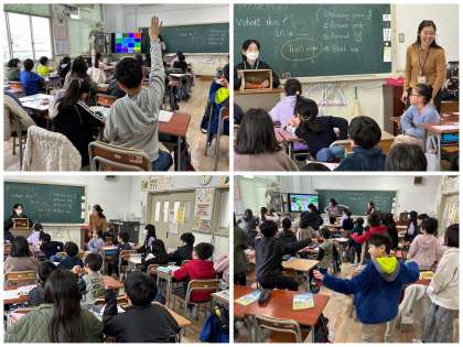 子どもたちは、学習した英語で答えたり、身体の動きを使って答えたりと、とても楽しんでいました。