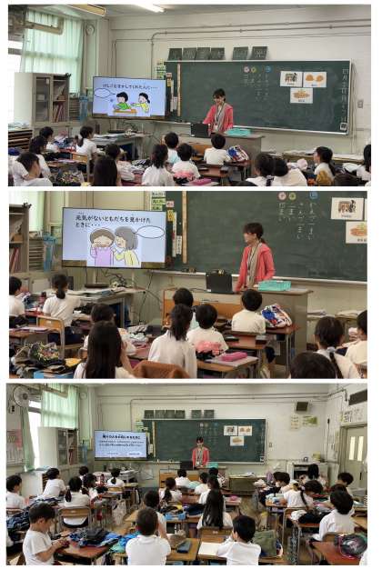 測定の前に、教室で保健室の先生から「ふわふわことば」「ちくちくことば」について学習しました。友だちが嬉しくなるように喋るには、どうしたらいいのかを考えました。