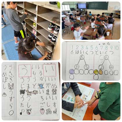ゴールデンウイークで連休を挟む今週の登校。1年生は先週の勢いをそのままに、学習や生活面で頑張っています。