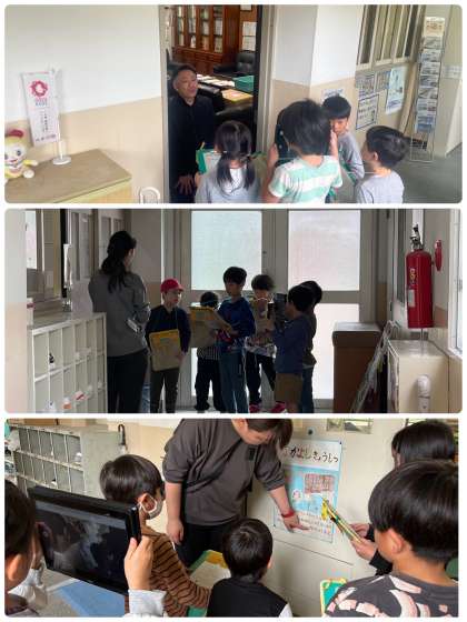 2年生は、5月に1年生と学校探検をして、学校のことを教える活動を行います。学校のいろいろな教室を教えるために、各教室の担当の先生にインタビューを行いました。
