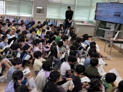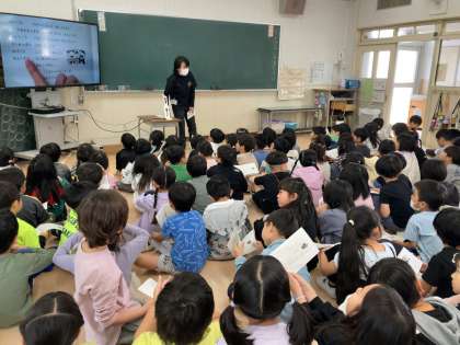 自分たちで折ったしおりを見ながら、持ちものや気をつけることを確認しました。