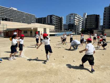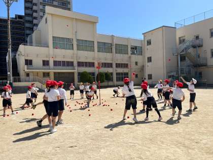 今日は、来週行われるソフトボール投げの練習として玉入れを行いました。