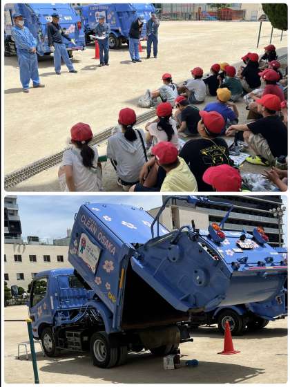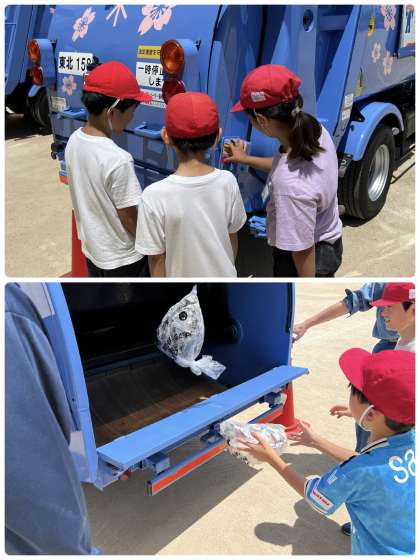 普段、街中で見かけるパッカー車のボタンを触らせてもらったり、ごみを捨てさせてもらったり、乗車体験もさせてもらったりしました。