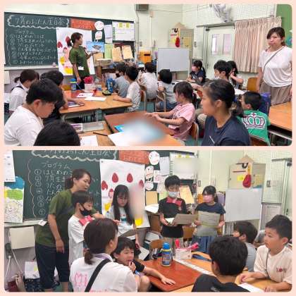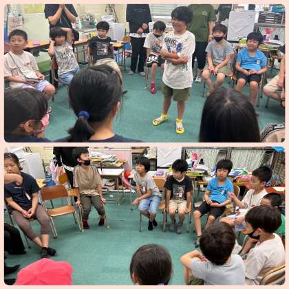 次に、恒例の「なかよしクイズ」をしました。誕生日の人が「私の好きな〇〇はなんでしょう」というクイズを考えてきてくれました。たてわりのグループで3択の中から答えを選ぶのに話し合いをしました。考えが分かれると、相手に譲ったり、じゃんけんや多数決をするなど、自分たちで解決することができました。