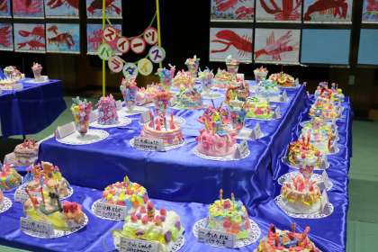 紙粘土に絵の具を練りこんで色をつけ、きれいでおいしそうなスィーツをつくりました。