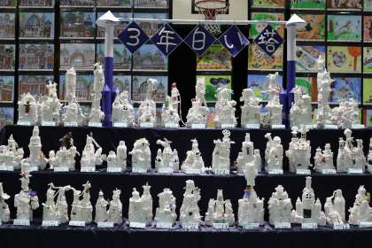 形もいろいろ。飾りもさまざま。そしてそれぞれのストーリーがある白い塔ができあがりました。
