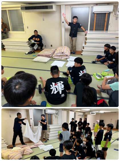 気持ちの良い退所のために、今夜はシーツの畳み方講座が開かれました。