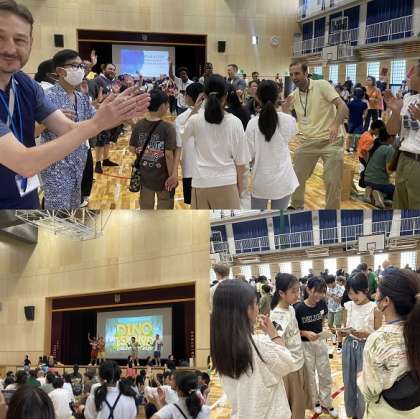 会場内では、指示も説明も全て英語で行われました。初めは緊張している姿が見られましたが、C-NETの先生とゲームをしたり、ダンスをしたり、英語で質問をしたりして英語に親しみにながら楽しそうに活動していました。