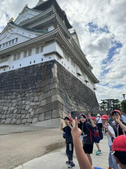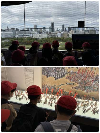大阪城や周りの街の風景を見ることができ、3年生で行っあべのハルカスからの景色と比べている子もいました。