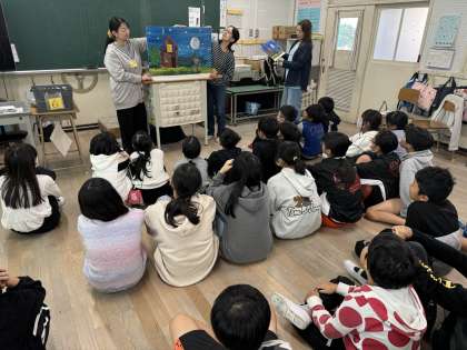 いつもは朝読みの15分間だけですが、SPでは45分間たっぷりと本の世界に連れて行ってくださいました。紙芝居や絵本から、世界のことについて知るきっかけとなる本、言葉の面白さに触れられる本や、普段は見ることができない大型絵本など、色とりどりの本を読んでいただきました。