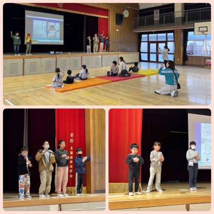 また、今週のなかよしタイムでは、なかよし集会のリハーサルを行いました。セリフや自分の立ち位置を確認し、舞台の上で手話をしました。普段とは少し違った景色での手話で緊張感もありましたが、みんな上手に手話をすることができており、集会に向けて気持ちが高まっていました。これまでたくさん練習をしてきたので本番は、心を一つにみんなで手話歌を楽しみましょうね♪