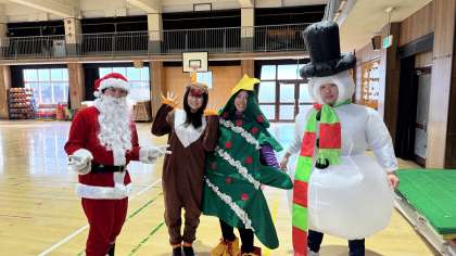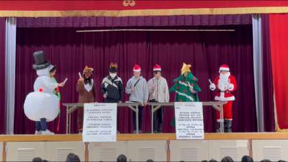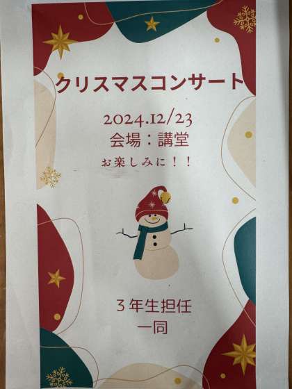 終業式を終えたあと、3年生みんなで講堂に集まりました。「クリスマスコンサート」として、サプライズで先生からハンドベルの演奏のプレゼントをしました。クリスマスの仮装をした先生たちを見て、子どもたちはとてもうれしそうでした。3学期も3年生の児童が楽しいことをたくさん楽しめるようにと考えております。3学期も温かく見守っていただけたら幸いです。