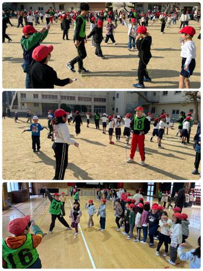 12月から始まったなわとびチャレンジ、今回15分休みに5・6年の体育委員会のお兄さんお姉さんたちに跳び方を教えてもらったり、何回跳べたか数えてもらったりしました。