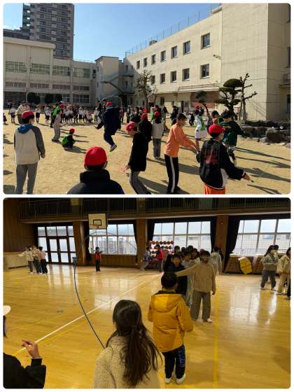 また、昼休みには講堂開放で大縄跳びを行いました。どの学級もみんなで声を出しながら跳んでいる姿が見られました。