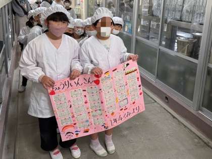 先週の24日金曜日には、毎日おいしい給食を作ってくださる給食調理員さんに感謝のお手紙を渡しました。