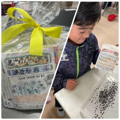 4月に1年生になる子に向けて、あさがおの種のプレゼントを準備しました。