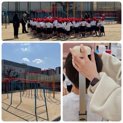 今日は、1年生全員で体育をして、遊具で遊んだり鬼ごっこをしたりしました。