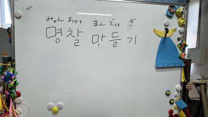 今日のポラム学級は、ハングルでイルム(名前)カードを作りました。