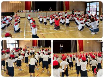 来週から、水泳学習が始まります。大事な命を守るための約束などを、1年生全体で確認しました。準備体操のダンスや、水慣れの体操を音楽に合わせて練習しました。