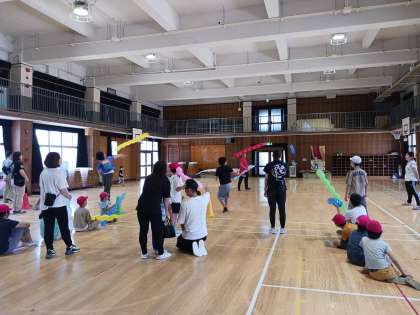 本日のなかよしタイムは講堂での運動遊びでした。ツイスト風船を使ったゲームでは、練習の後にチームで作戦会議をして、どうすればうまく点数がとれるかを話し合い、協力して楽しみました。最後のビンゴリレーは速さだけでなく頭脳戦で盛り上がりました!来年度の新入生の見学もあり、一緒に楽しい時間を過ごせました。