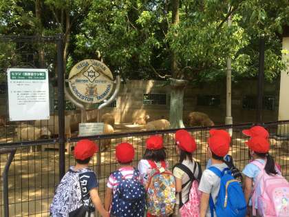 1年生になって初めての校外活動に行ってきました。先週、雨で延期になってしまったこともあり、子どもたちはとても楽しみにしていたようです。