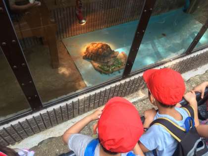 五月山動物園ではウォンバット、アルパカ、ワラビーなどの動物を間近で見ることができました。ワラビーのお腹の袋に赤ちゃんが入っているのを発見すると子どもたちも大喜び!